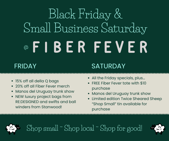 - FREE Fiber Fever tote with $10 purchase (while supplies last)