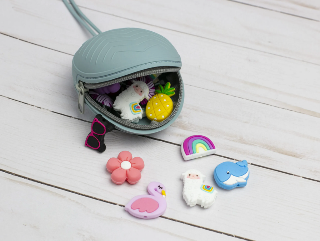 These round storage pouch bags from Fox & Pine provide an excellent solution for organizing your stitch stoppers and knitting accessories. Available in several attractive colors, each pouch features a secure top zipper and a loop for attaching it conveniently to your yarn bag.
